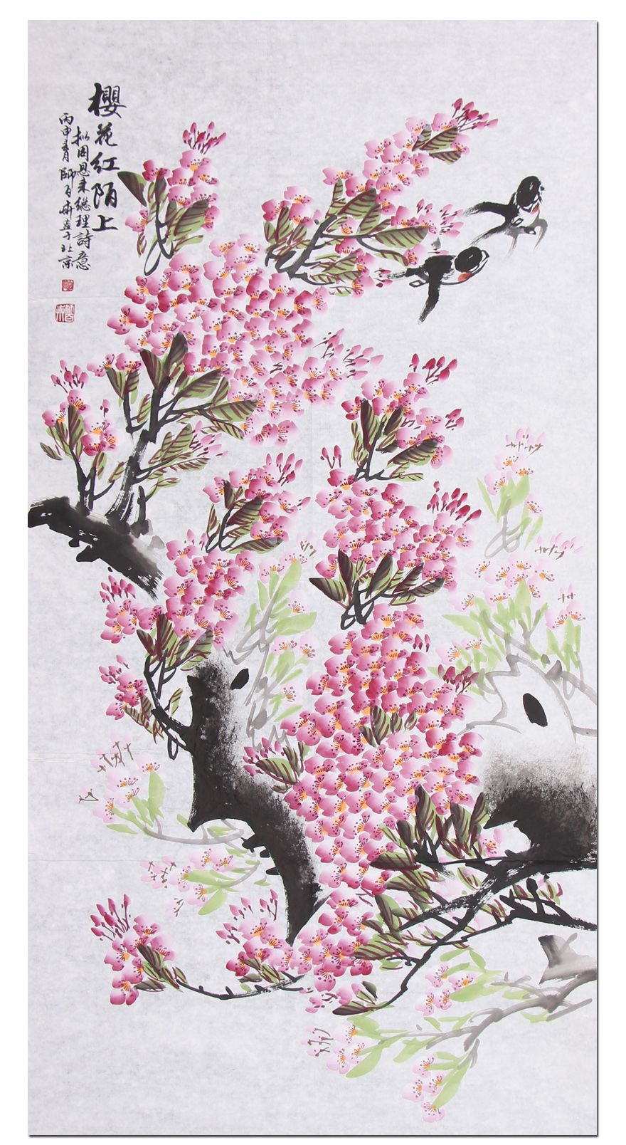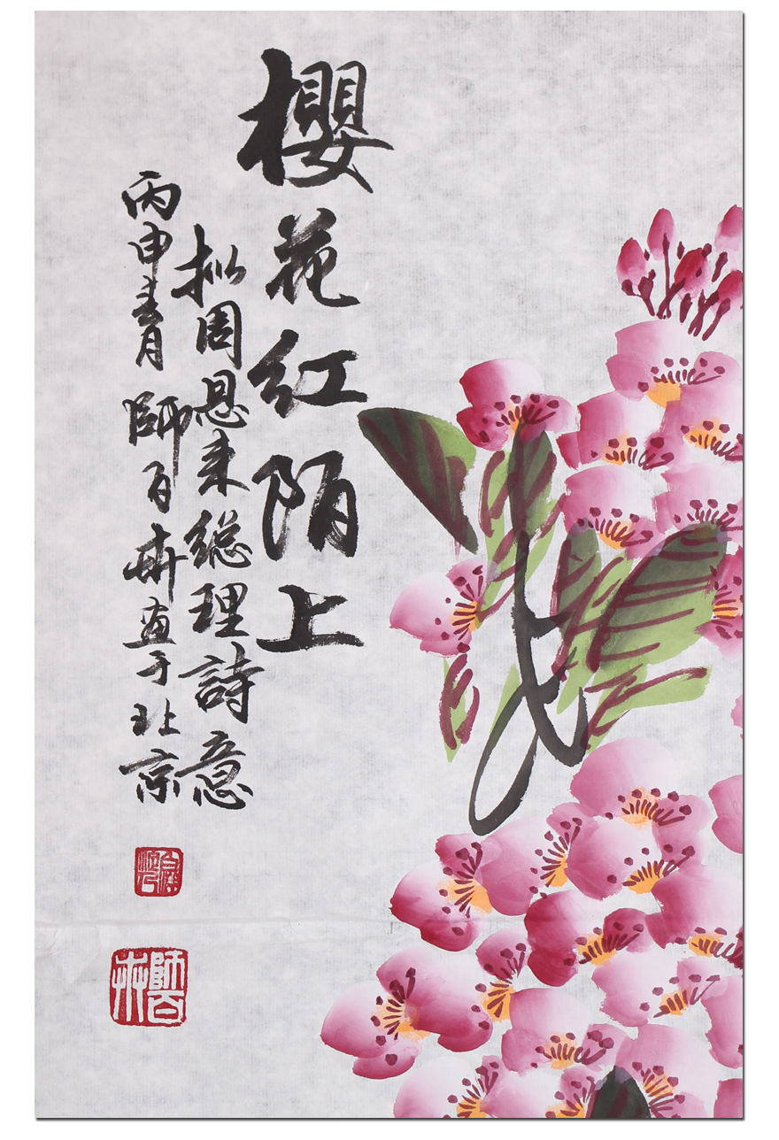 这幅作品,一株樱花朝着同一方向伸展的花木,看似结构得毫不经意,可你细细琢磨后,就能从平淡中品出高妙来:老辣苍拙的运笔,浓淡自在的用墨,挥写出散漫中的严谨。