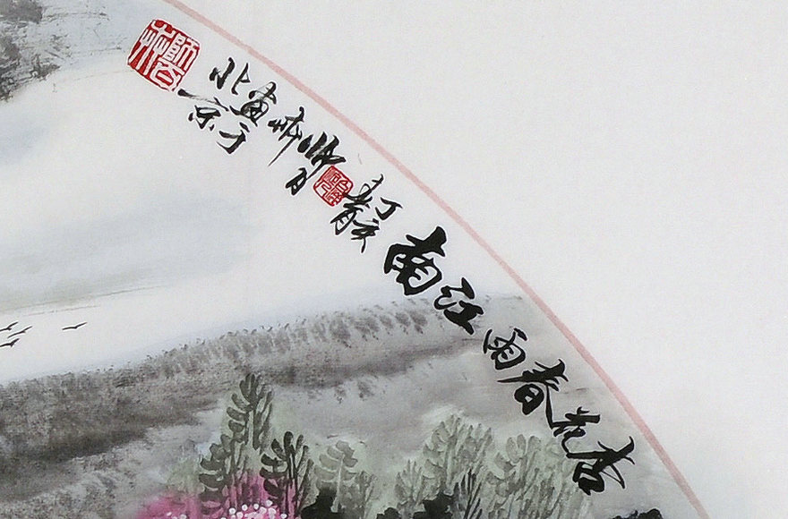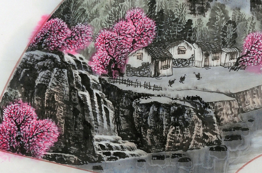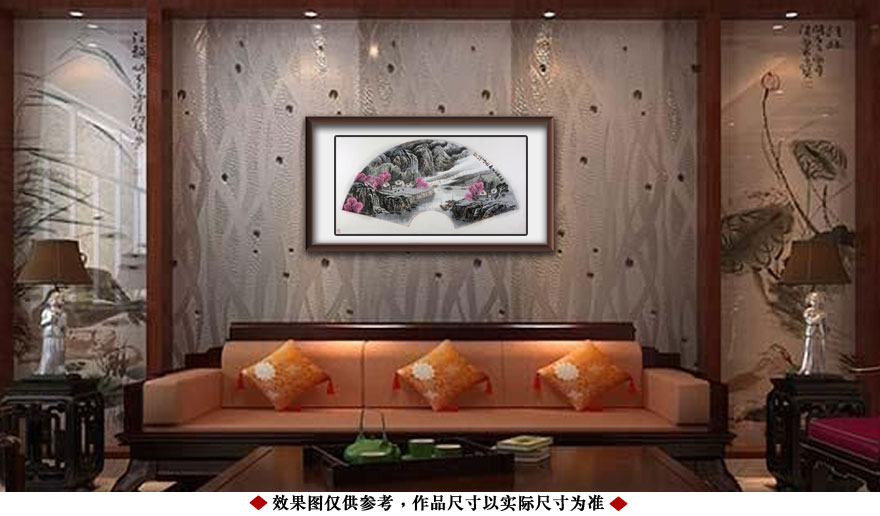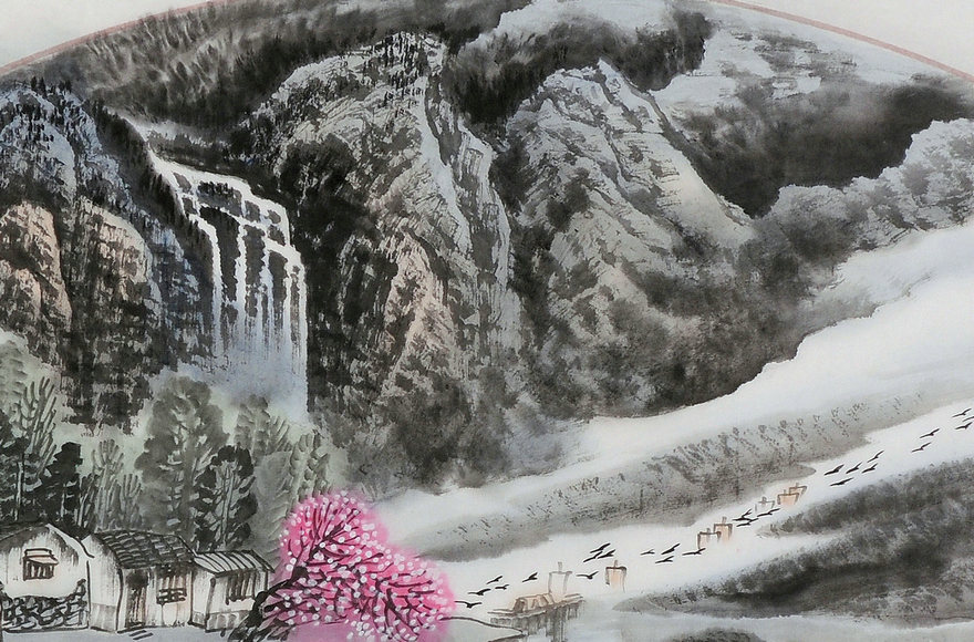 整幅画场景开阔格调淡雅,给人的感觉富有文艺气息,景物虚实结合,山石树木房屋建筑等都是实写,而河流云雾都是虚写或留白来展示,虚实结合展现了高超的绘画技巧。