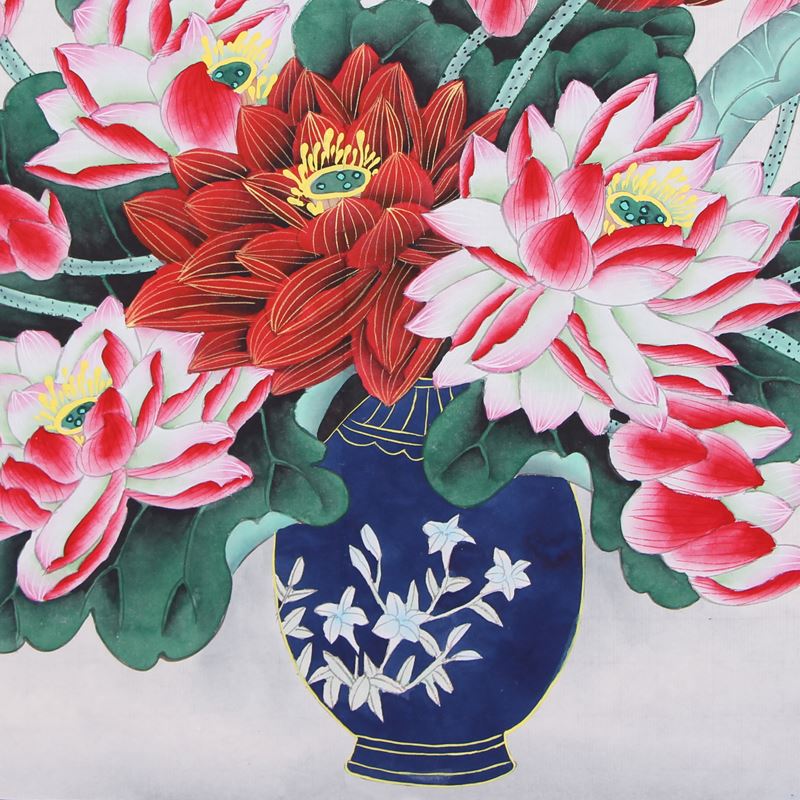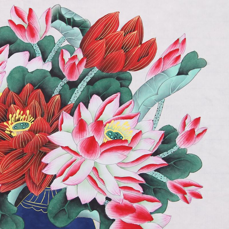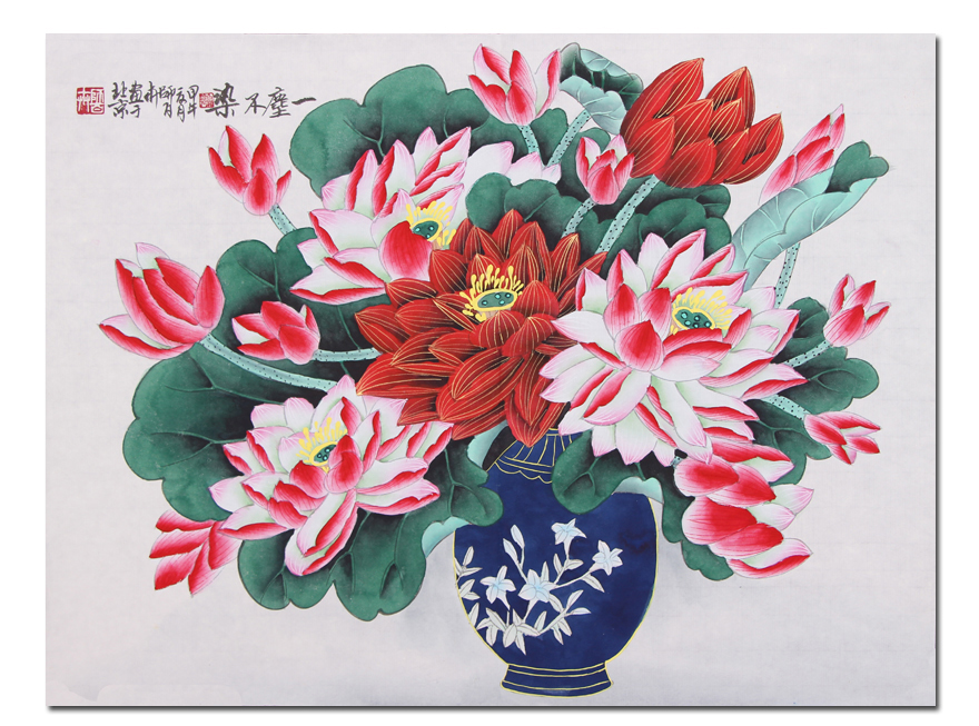 作品中花繁枝密,叶蕊开张,沐浴着明媚的春光,它要把美丽的容貌无私奉献给大地.奉献给观者,来点缀祖国的太好河山。